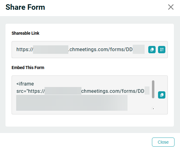You can use forms to gather information from members. Forms can be embedded into your website by copying/pasting a code block. Learn more. Note that forms must be public to be accessible on your website, meaning that the option to limit the form to members only must be turned off.