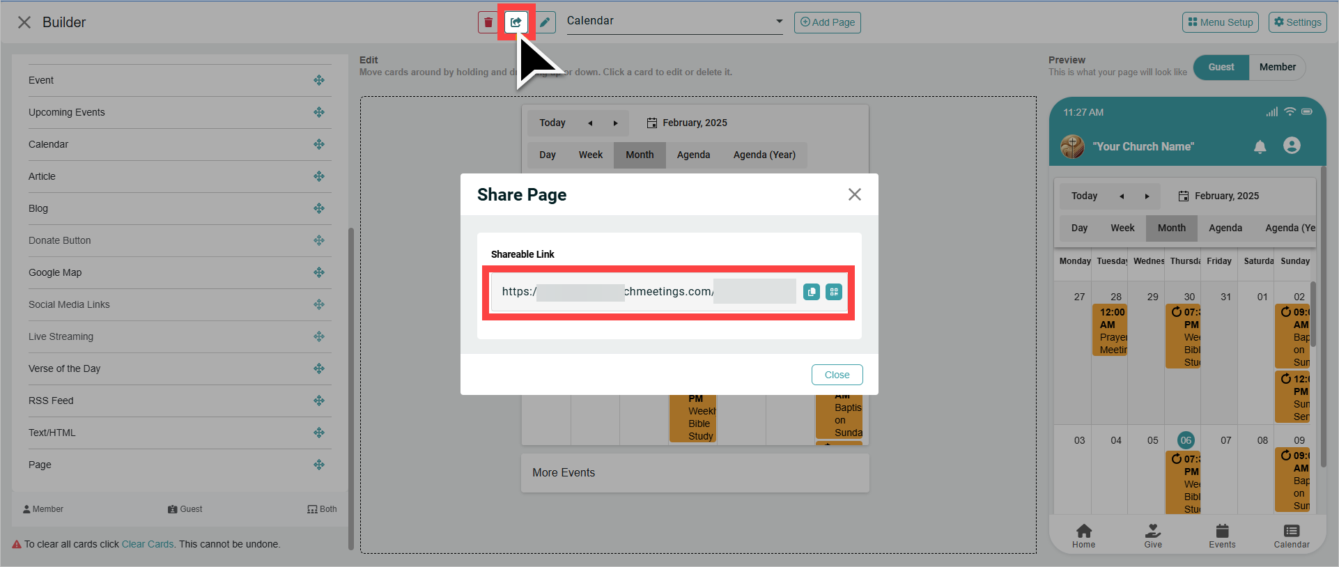 If you have a paid plan, your church app includes pages you can create and share with members and guests. You can make them accessible to website visitors if they are visible to guests by linking to them.