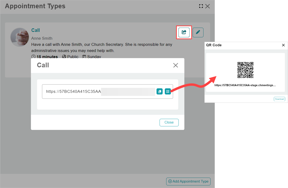 Members can book appointments with church servants via ChMeetings and you can add them to your website via a shareable link. Note that the appointment type must be publicly visible to be made available on your website.