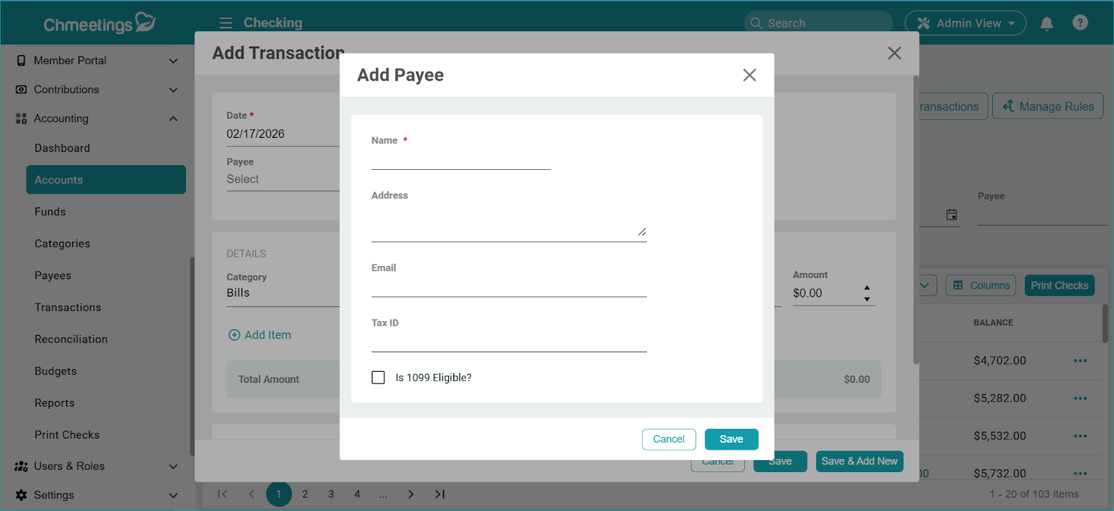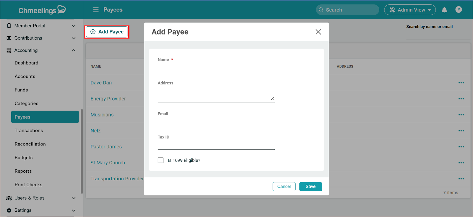 - Add a Payee From Accounting > Payees