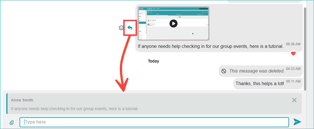 When sending messages, the group chat area behaves very similarly to other messaging apps you may be familiar with, for example, WhatsApp.