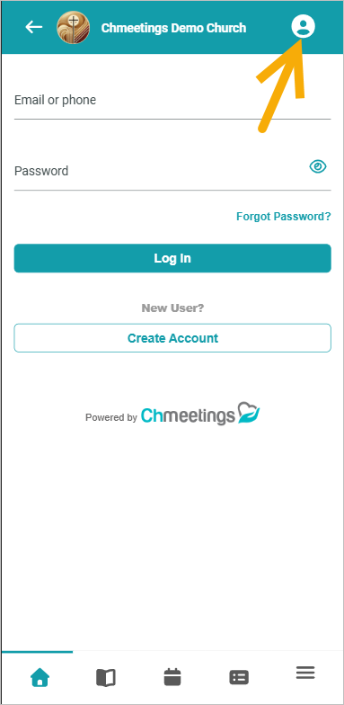 If members don’t see an option to log in or register to your church app, it’s likely because the option was hidden from the Admin side. To unhide it, follow these steps: