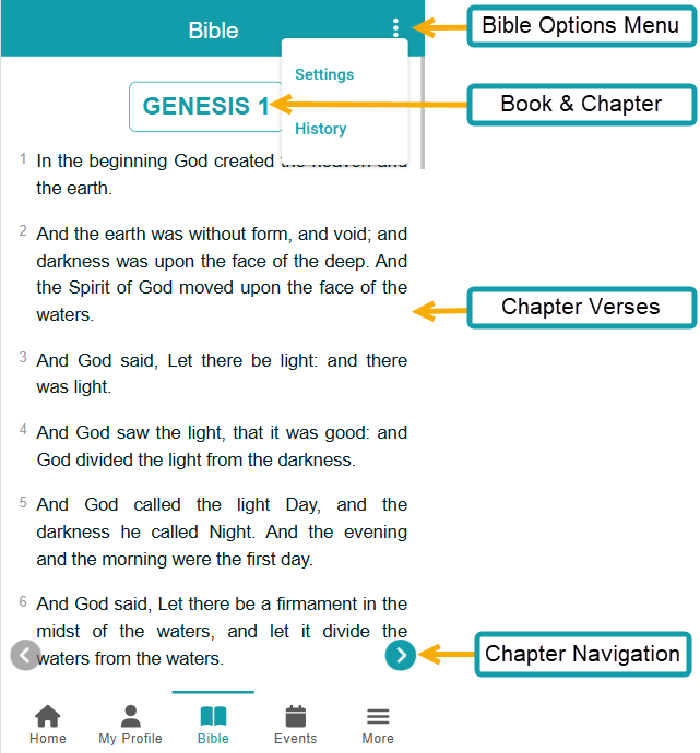- History, where you can find your verse Bookmarks, Highlights, and Notes.