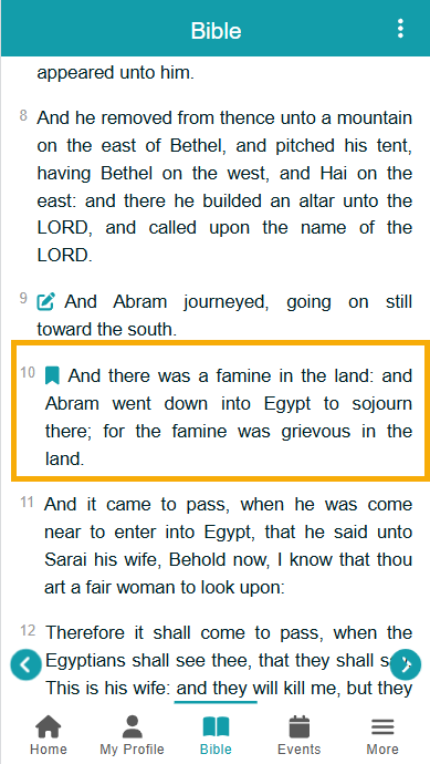 - Notes: Lists the verses you added notes to, and displays the content of your notes.
