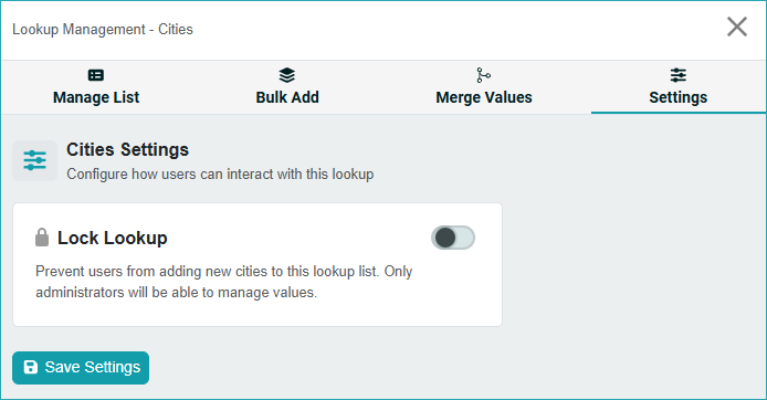 Lock Lookup controls how cities are added to your database.