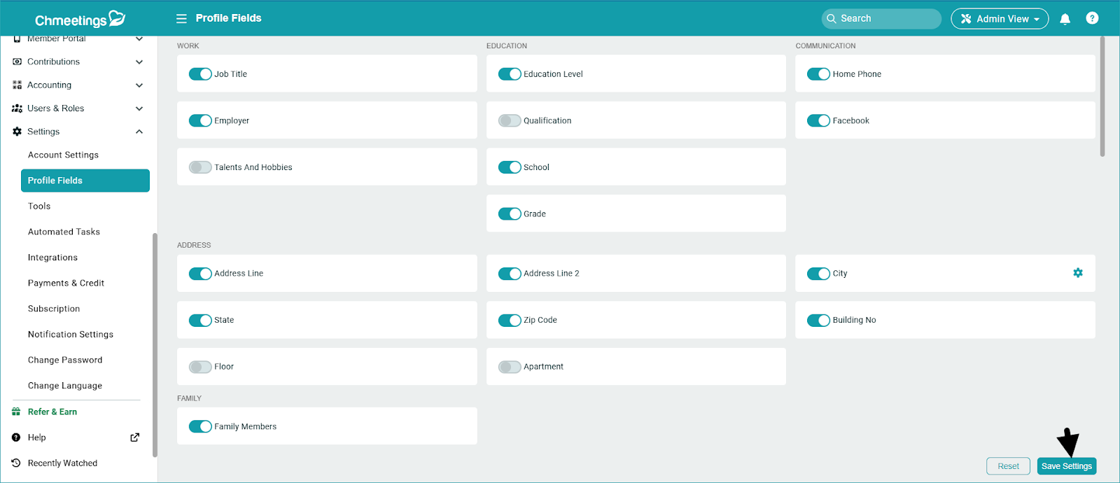 When done working on your City Field, close its settings from the X at the top right, then click Save Settings within the main Profile Fields screen.