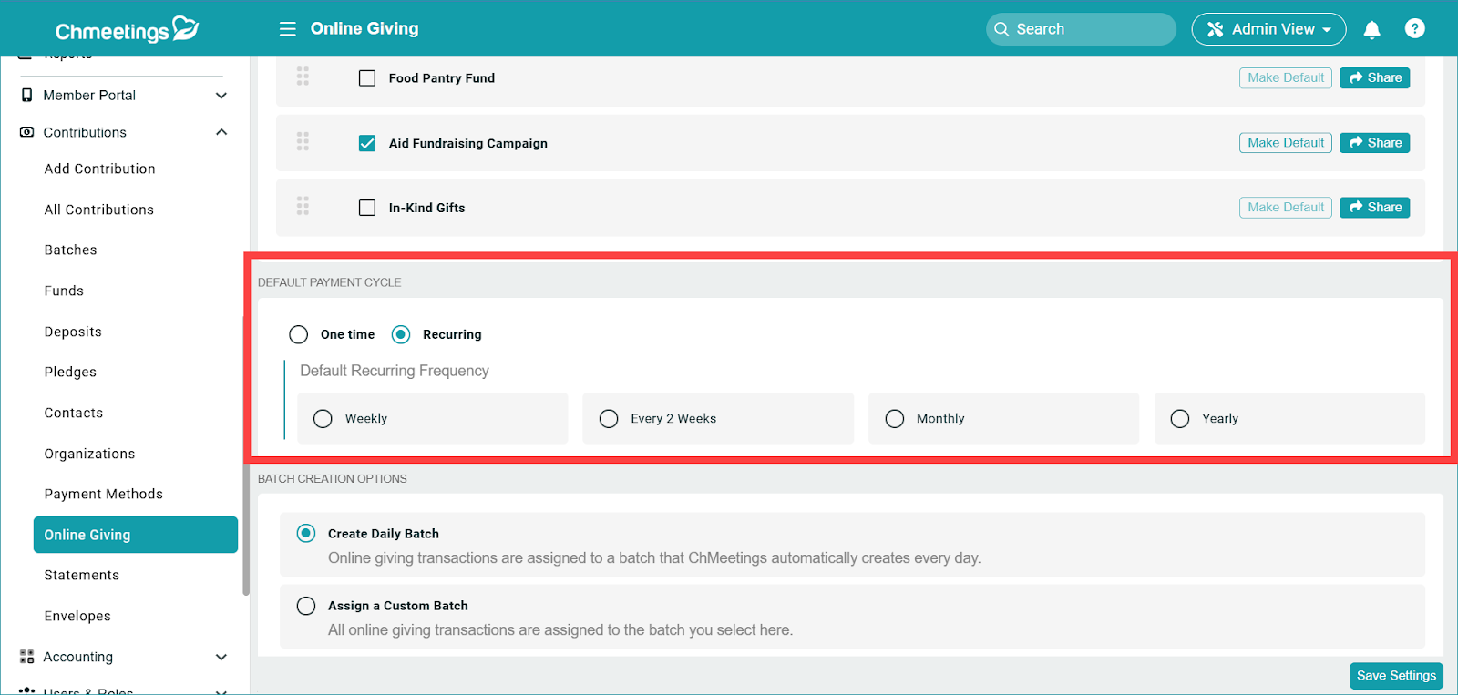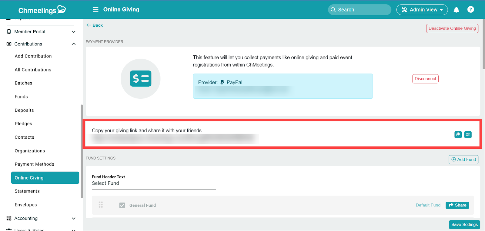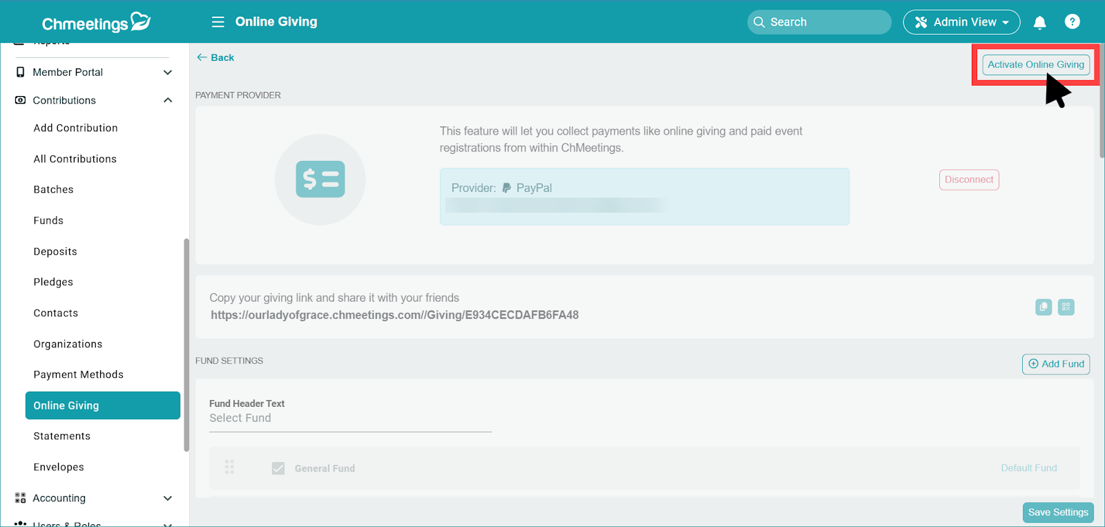Click Save Settings when you have finished setting up online giving.