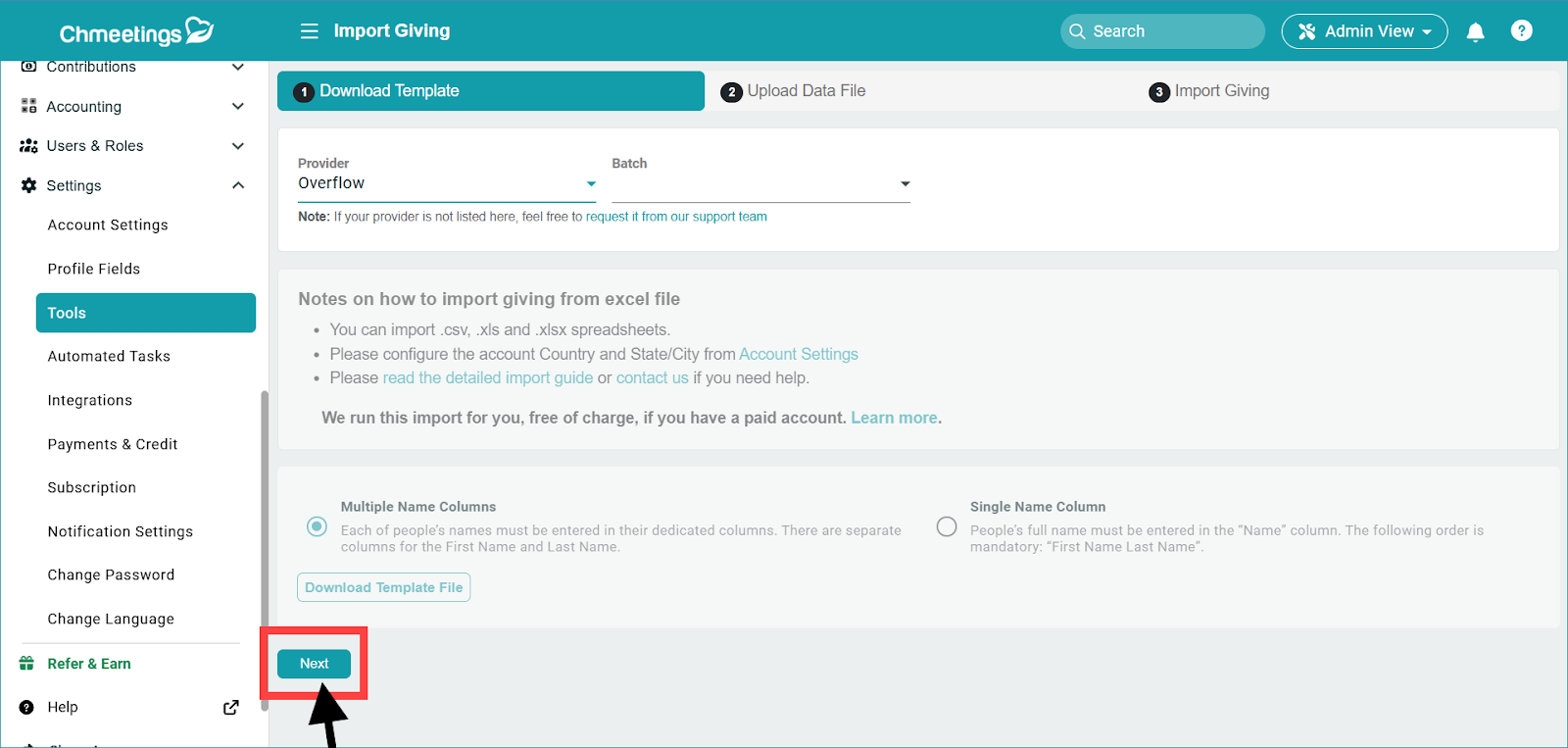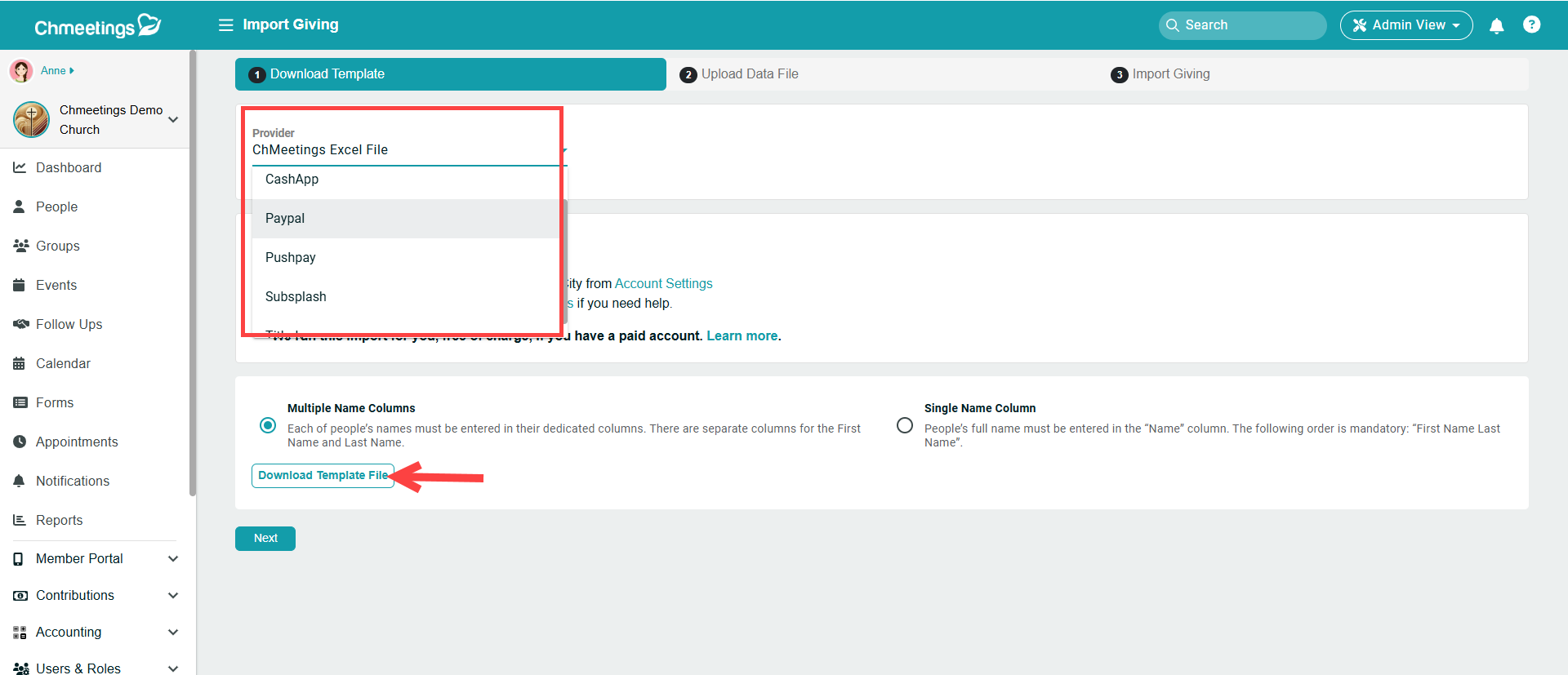 Import using the ChMeetings Excel File
