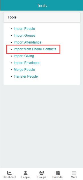 Mobile contacts can only be imported using the ChMeetings Mobile App, available on Android and iOS.