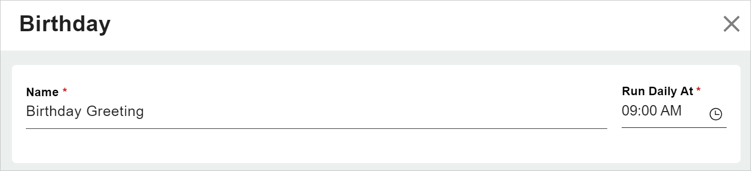 Birthday: Send birthday greetings to people via email, push notifications, or SMS. This task runs daily at the scheduled time for all people who celebrate their birthday that day.